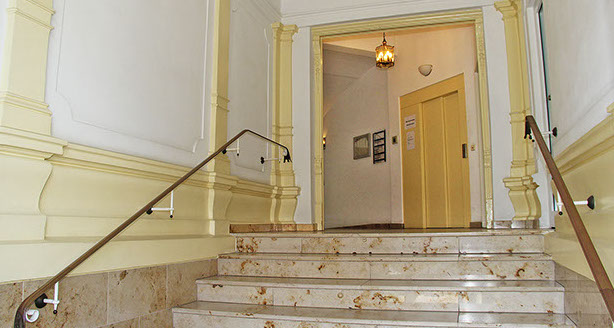 … ein beeindruckendes Eingangsportal im Haus, das unsere Praxis im Hochpaterre beherbergt, und – bei Bedarf – auch ein barrierefreier Zugang.