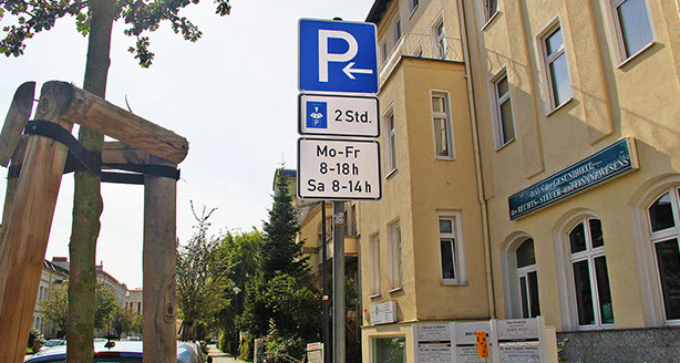 … ausreichende Parkmöglichkeiten vor dem Haus und wenige Meter von der Praxis entfernt auch eine Bushaltestelle, sodass wir gut erreichbar sind.